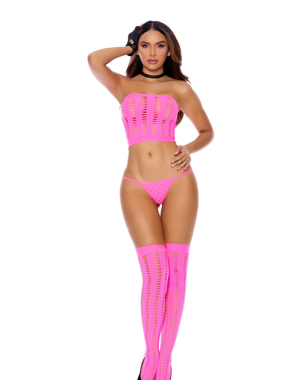 Bring out the adorable girlie in you with this sexy 3 piece set, which includes: Pothole Bandeau, stockings and G-string.